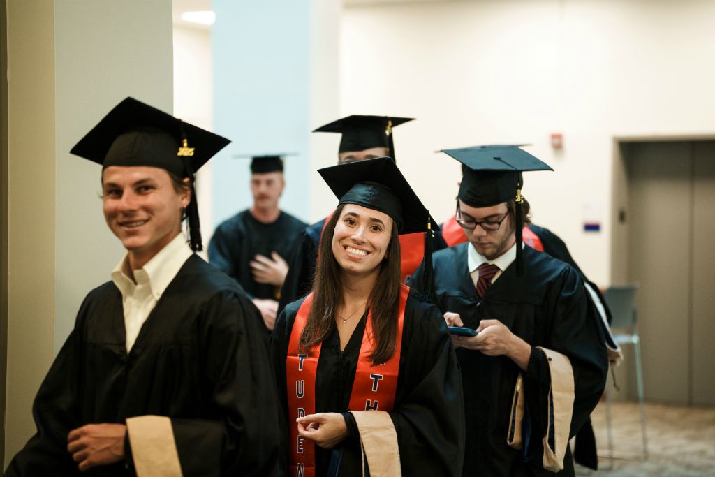 The 2025 Master's Hooding ceremony was held on Friday, May 9, 2025. In this service, Graduate Program graduates wear caps and gowns and receive their master’s hood from faculty.